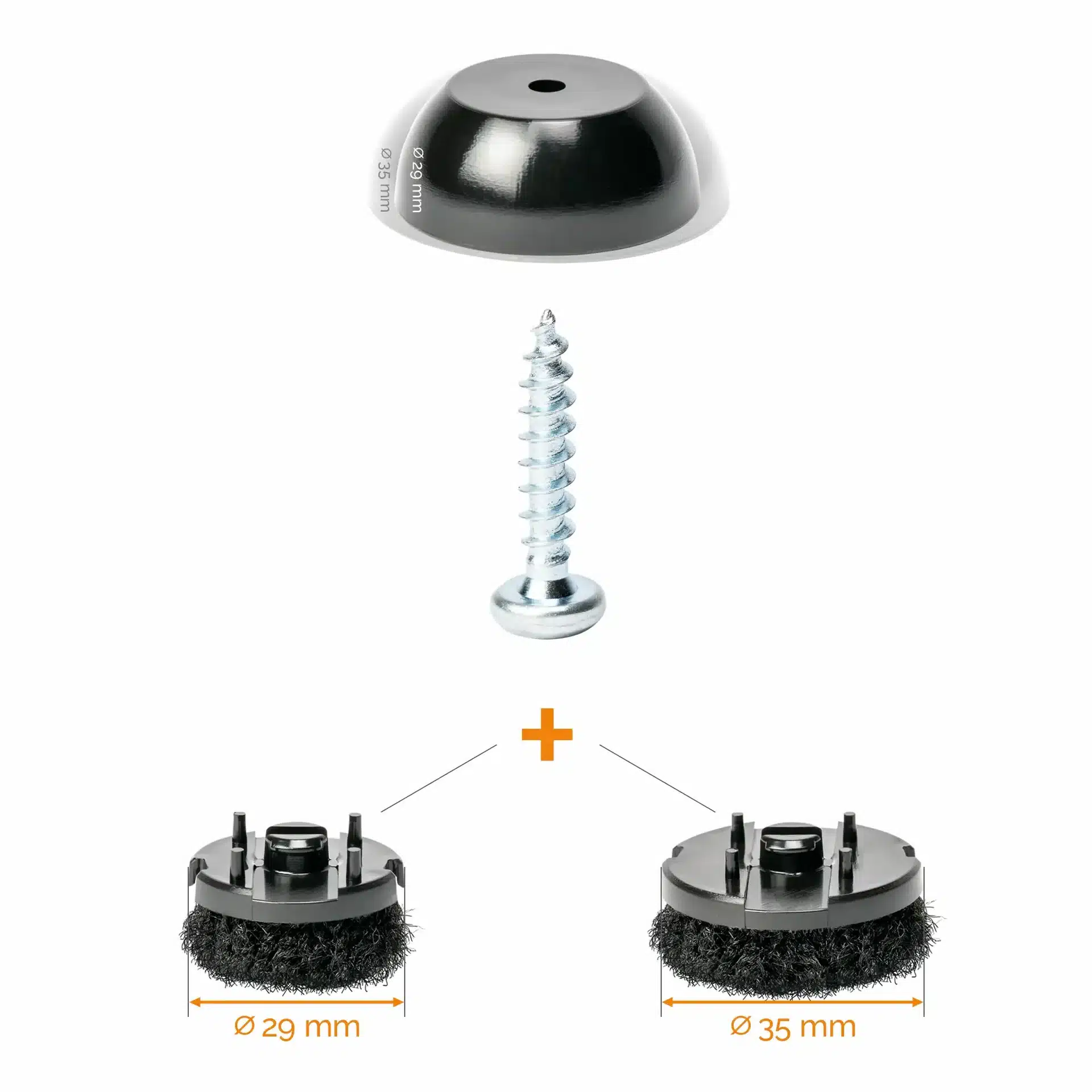 Formaat glijvlak: verkrijgbaar in ø29mm of ø35 mm. Hoe groter het oppervlak, hoe beter het meubel schuift!